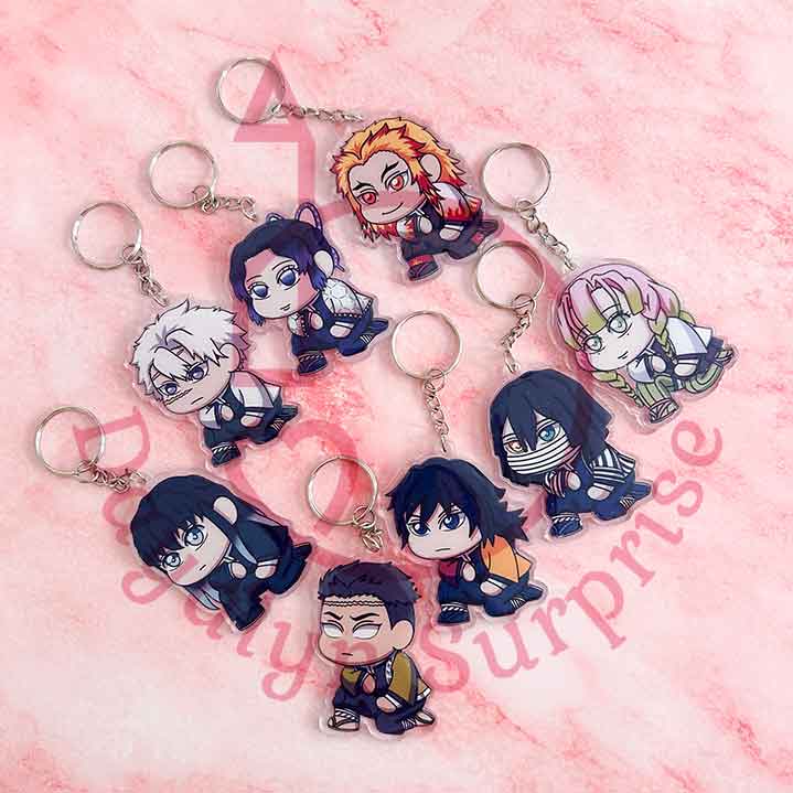 Descubre nuestros exclusivos llaveros de anime inspirados en Kimetsu no Yaiba (Demon Slayer), ideales para fans de Los 9 pilares que constituyen este anime tan famoso. Cada llavero cuenta con ilustraciones únicas y llenas de detalles, perfectas para llevar a tu personaje favorito siempre contigo.